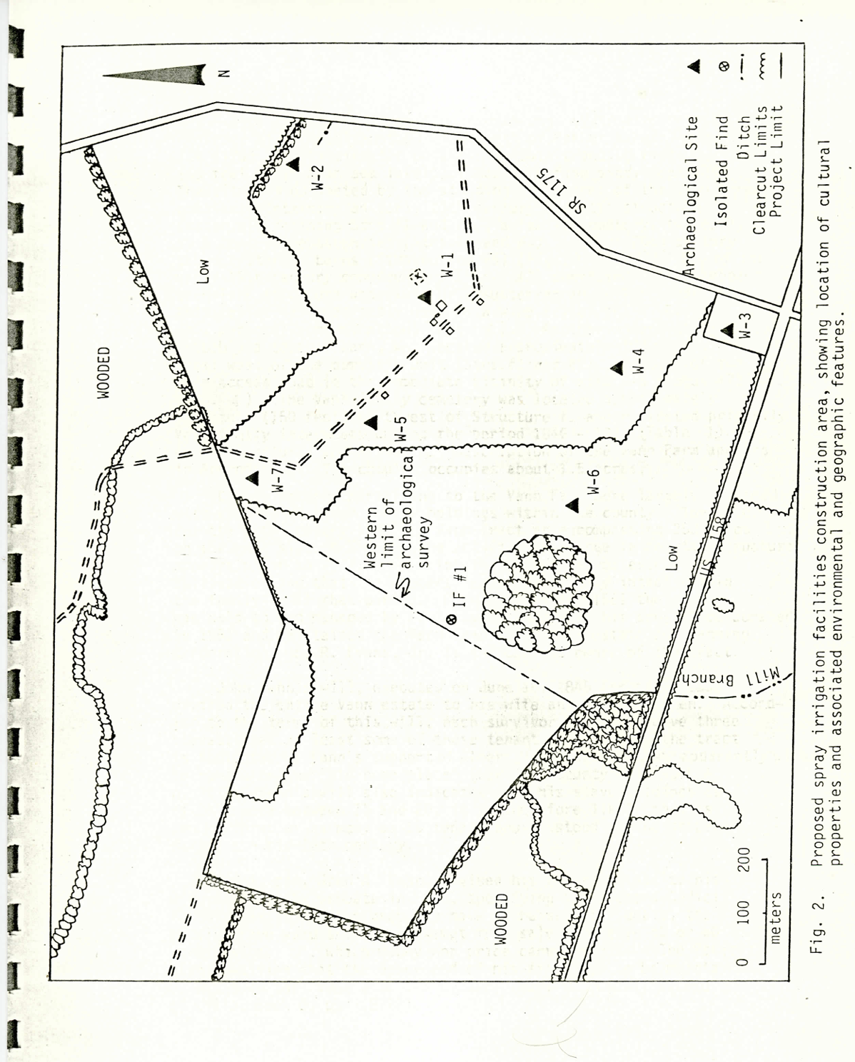 - Map of the proposed spray irrigation facilities construction area at the Vann Farmstead. Part of the Carolina Archeological Services Cultural and Environmental Study of the Proposed Winton Spray Irrigation Facilty in 1981.